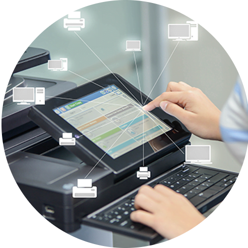Quando o assunto é gerenciamento de impressão, conte conosco para tornar este trabalho na sua empresa bem mais simples e eficaz. Nossa solução permite monitorar, manter e atualizar todos os dispositivos de saída local e remoto. Através dele, os administradores podem instalar e atualizar o firmware de todos os dispositivos conectados, ao mesmo tempo que monitoram facilmente páginas coloridas/em preto e branco, configuração de dispositivos, contas, uso de toner e alertas.
